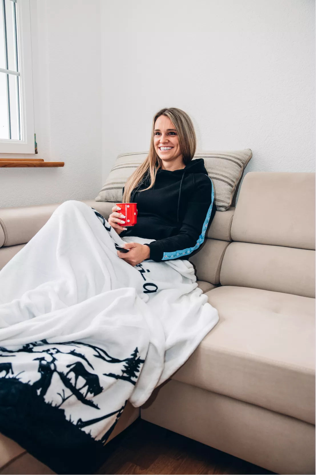 Die flauschige Edelvetica Kuscheldecke aus 95% Polyester und 5% Elasthan.